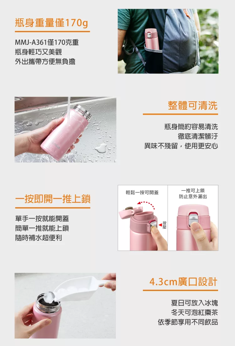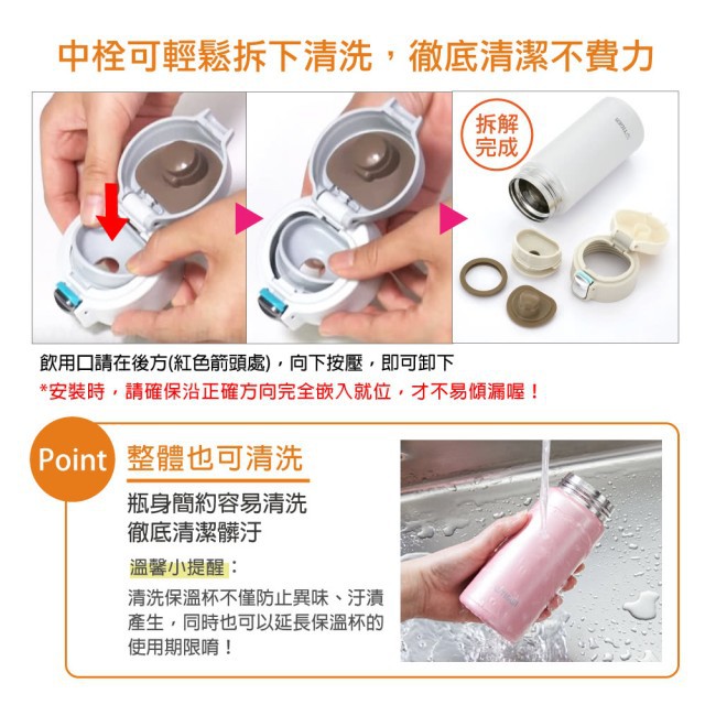 博客來 tiger虎牌360cc 夢重力超輕量彈蓋隨身保溫瓶 mmj a361 桃花粉