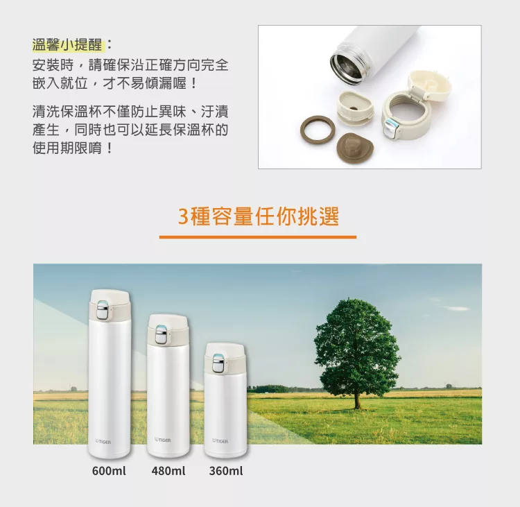 虎牌 極輕量夢重力彈蓋式保冷保溫杯0 36l mmj a036